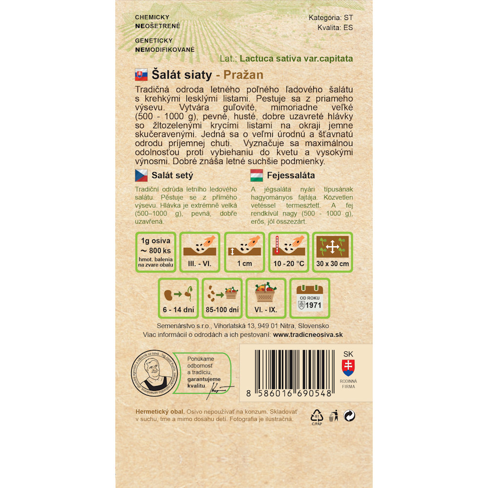 Tradičná odroda letného poľného ľadového šalátu s krehkými lesklými listami. Pestuje sa z priameho výsevu. Vytvára guľovité, mimoriadne veľké (500 - 1000 g), pevné, husté, dobre uzavreté hlávky so žltozelenými krycími listami na okraji jemne skučeravenými. Jedná sa o veľmi úrodnú a šťavnatú odrodu príjemnej chuti. Vyznačuje sa maximálnou odolnosťou proti vybiehaniu do kvetu a vysokými výnosmi. Znáša dobré letné suchšie podmienky.
