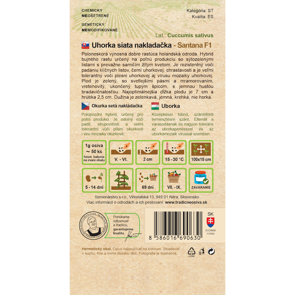 Poloneskorá výnosná dobre rastúca holandská odroda. Hybrid bujného rastu určený na poľnú produkciu so sýtozelenými listami s prevažne samičím žltým kvetom. Je rezistentný voči padaniu klíčnych listov, černi uhorkovej, chrastavosti a je veľmi tolerantný voči plesni uhorkovej aj vírusu mozaiky uhorkovej. Plod je zelený, so svetlejšími pásmi a mramorovaním, vretenovitý, ukončený tupým špicom, s jemnou hustou bradavičnatosťou. Najoptimálnejšia dĺžka plodu je 7 cm a hrúbka 2,5 cm. Dužina je zelenkavá, jemná, krehká, nie horká.